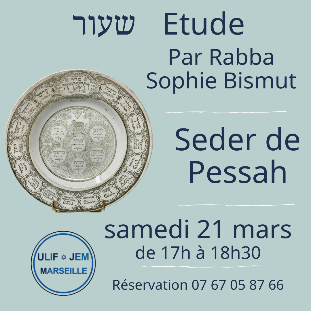 Etude : le seder de Pessah par Rabba Sophie – samedi 21 mars à 17h