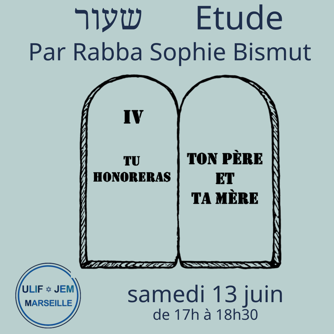 Etude : Tu honoreras tes parents par Rabba Sophie – samedi 13 juin à 17h