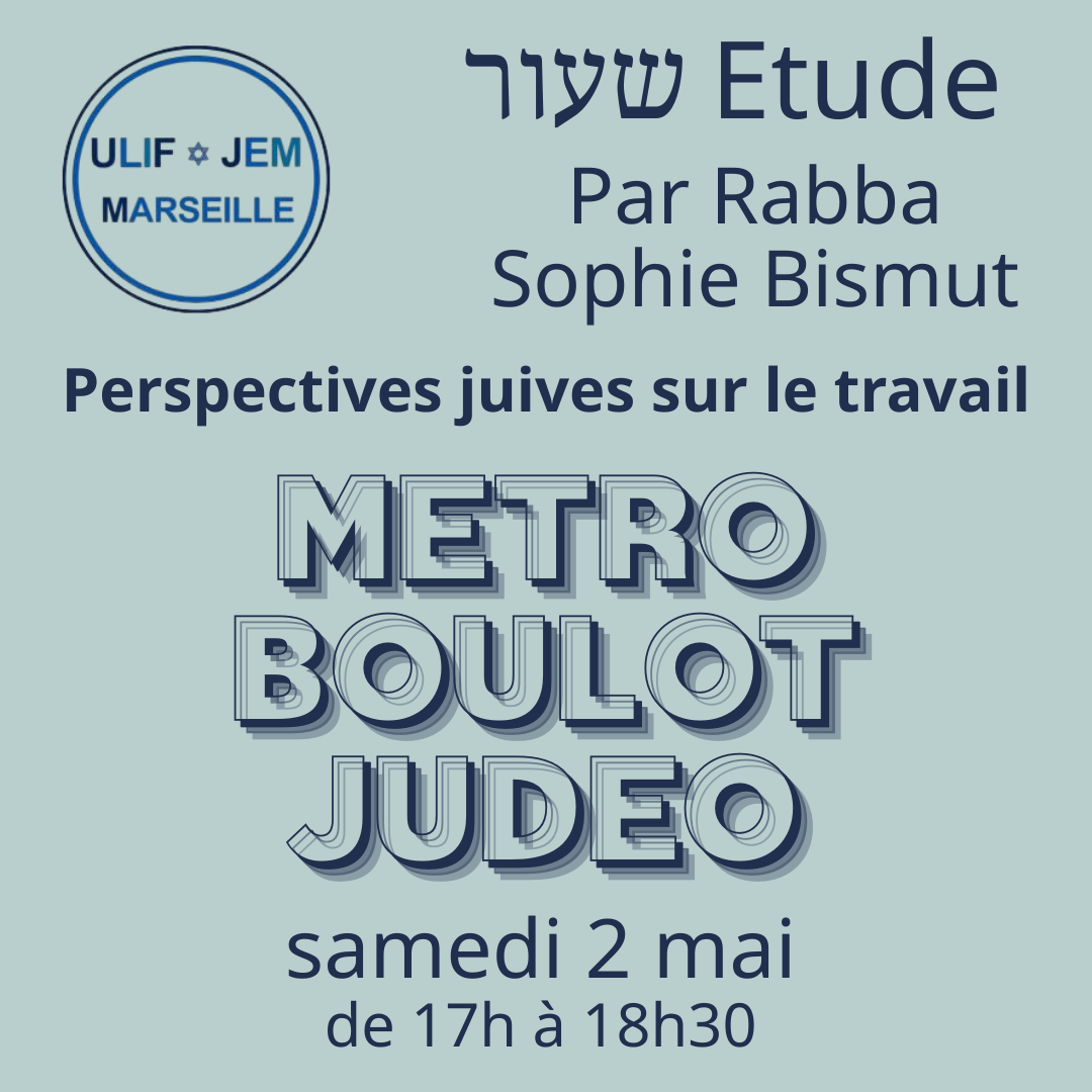 Etude : Perspectives juives sur le travail par Rabba Sophie – samedi 2 mai à 17h